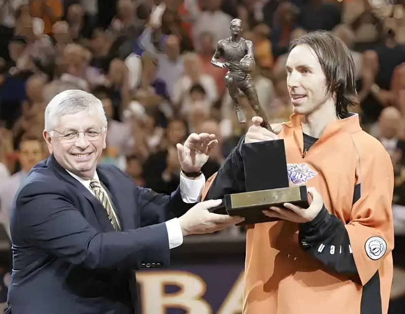 纳什本人以11.5次助攻称霸助攻榜单,即便场均得分只有15.5分非常普通,但靠着团队战绩加持和低谷翻身的故事性,最后在MVP票选中险胜对手拿下MVP,入选最佳阵容一阵,成为名副其实的联盟第一控卫。